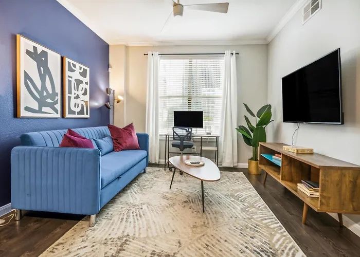 1001 Ross Avenue Apartment Dallas lies in the West End district of Dallas and offers swift access to the public park "Pioneer Plaza", which is only a 7-minute walk away.
